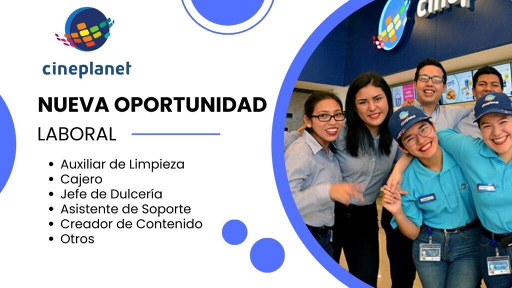 Cineplanet – Oferta de Empleos para Cajero, Auxiliar de Limpieza y Jefe de Dulceria