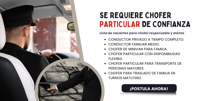 Por esta razón, se busca una persona responsable, respetuosa y comprometida, que cuente con vocación de servicio y mantenga una actitud profesional en todo momento. Asimismo, es importante que el conductor sea puntual, discreto y cumpla adecuadamente con las normas y lineamientos establecidos por la familia empleadora.